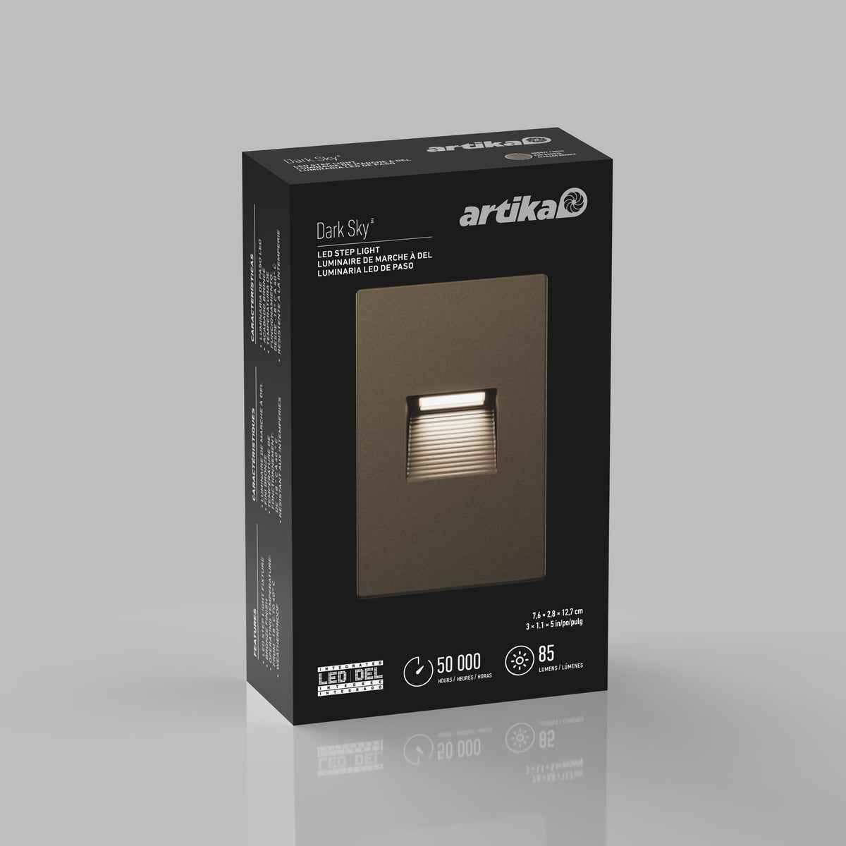Embellissez votre entrée principale, votre terrasse ou un escalier intérieur avec le Dark Sky Pro Step. Cette petite lumière encastrée pour escalier vous permet de toujours savoir où mettre le pied lorsque la nuit tombe! Offert en fini noir, ce discret luminaire fait d’aluminium et de verre résiste aux intempéries, ce qui lui confère un maximum de polyvalence. Utilisez-le à tout endroit où la sécurité est un enjeu! Dark Sky Pro Step est un élégant luminaire à DEL intégrée qui vous garantit une durée de vie de 50 000. Son flux lumineux est de 150 lumens.