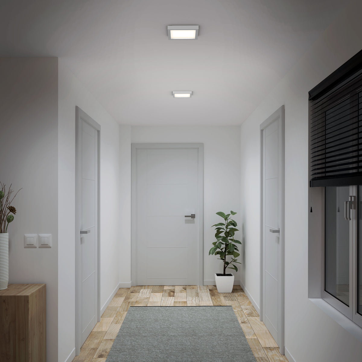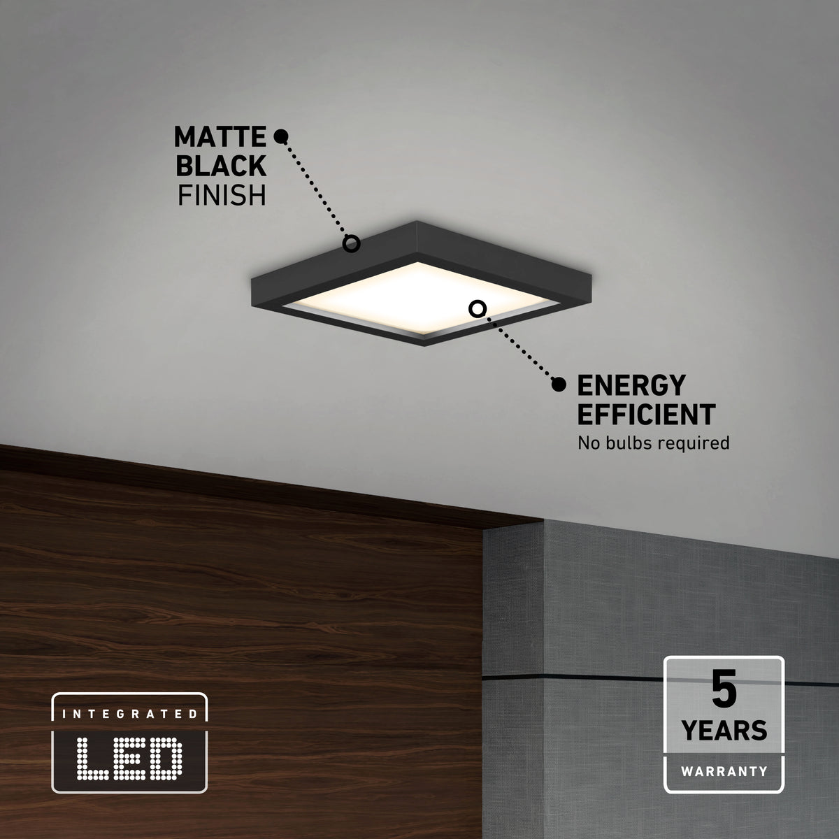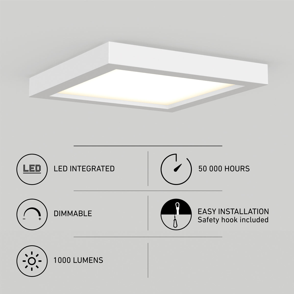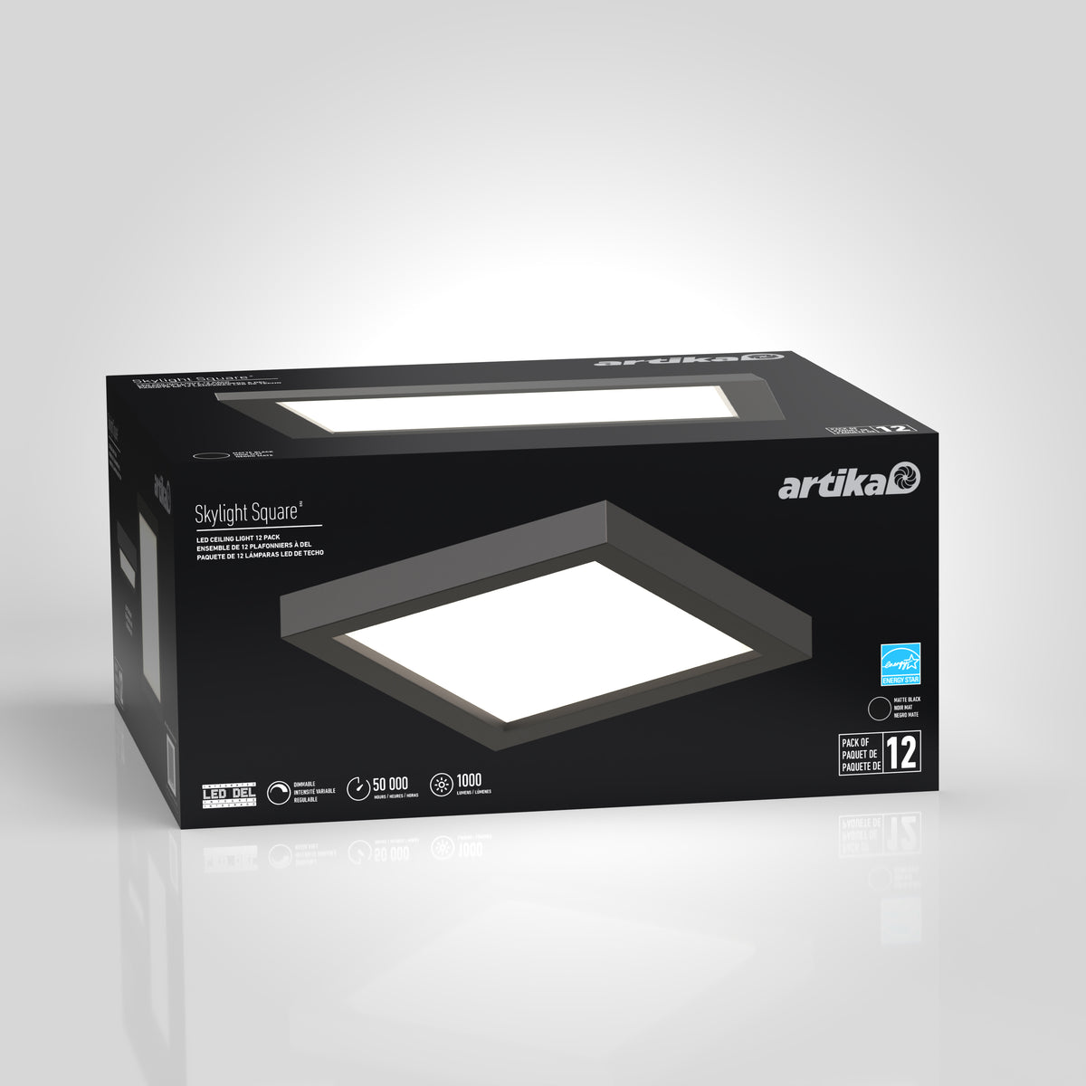 Cet ensemble de 12 plafonniers à DEL intégrée comprend 12 unités de forme carrée au fini noir mat. D’une longueur et d’une largeur de 16,5 cm (6,5 po), ils peuvent éclairer de petites pièces ou être installés en série de plusieurs dans une vaste pièce afin de créer un effet d’uniformité, entre autres. Avec leur flux lumineux de 1000 lumens chacun (puissance de 15 W), ils s’avèrent puissants compte tenu de leur petite taille. Leur intensité est ajustable avec un gradateur compatible. Blanc doux (3000 K) idéal pour la plupart des utilisations et installation facile. Conformes à la norme JA8-2022; durée de vie : 50 000 heures; garantie de 5 ans.